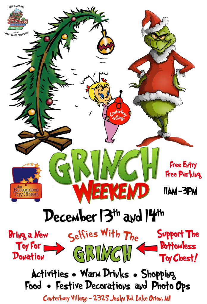 All village stores will be open for holiday shopping as well. Grab a cup of cocoa, take in the decorations throughout the village, and find those last minute gifts! Several of the shops will also be offering special Grinch themed freebies and activities!
