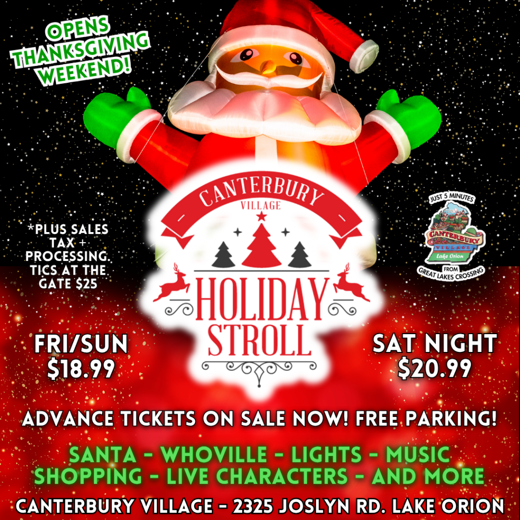 The ultimate outdoor holiday experience is at Canterbury Village in Lake Orion! Our quaint shopping village transforms to a winter wonderland to provide a true holiday setting that brings the spirit of Christmas to life!